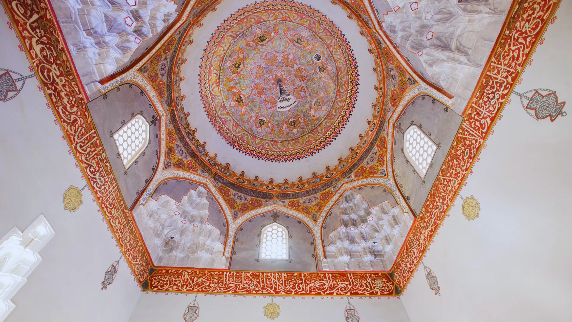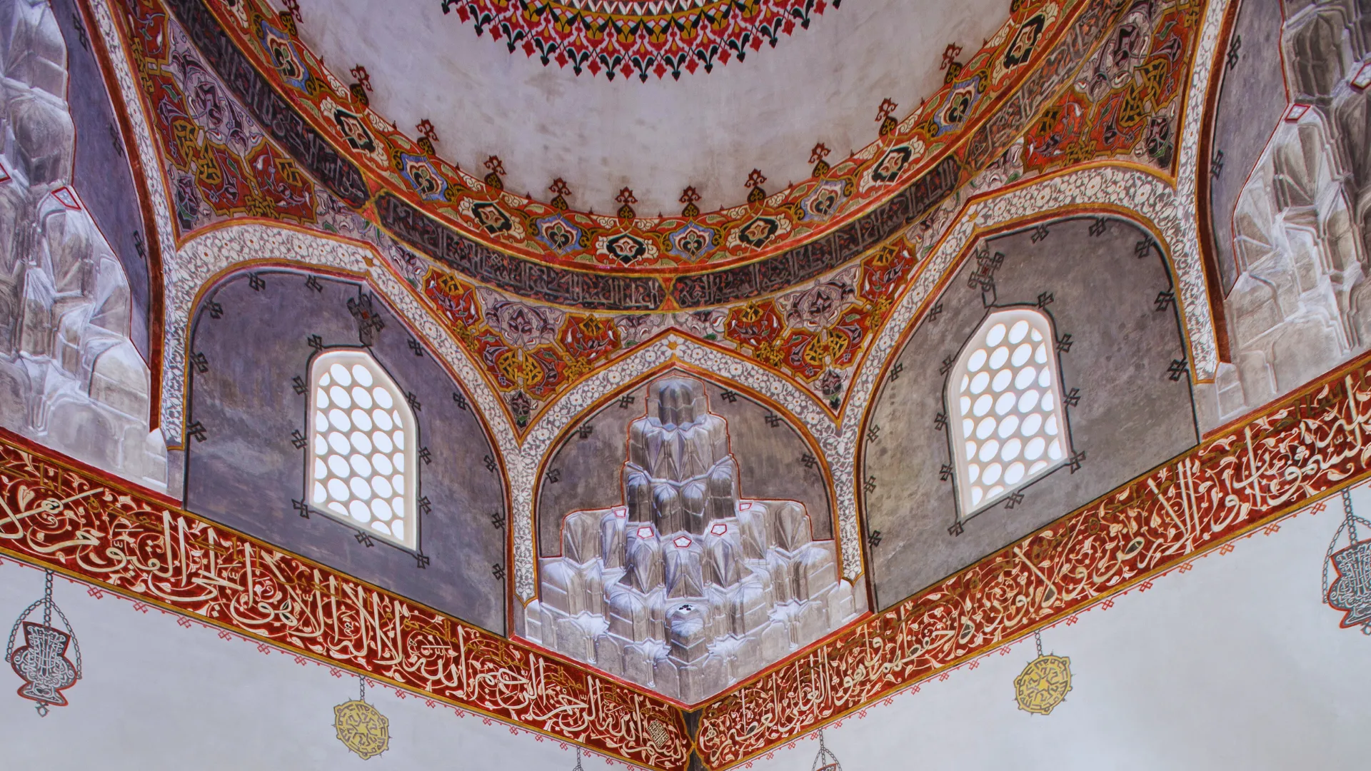 Türbede bulunan 16. yüzyıla ait kalem işleri; renk, desen ve bezeme kompozisyonu ile döneminin en iyi kalem işi süslemeleri örneklerindendir. 19. yüzyılın sonlarında sıvanarak Barok süslemelerle kaplanan 16. yüzyıla ait özgün kalem işleri 2013 yılı restorasyonunda sıva raspası yapılarak yeniden ihya edilmiştir.
