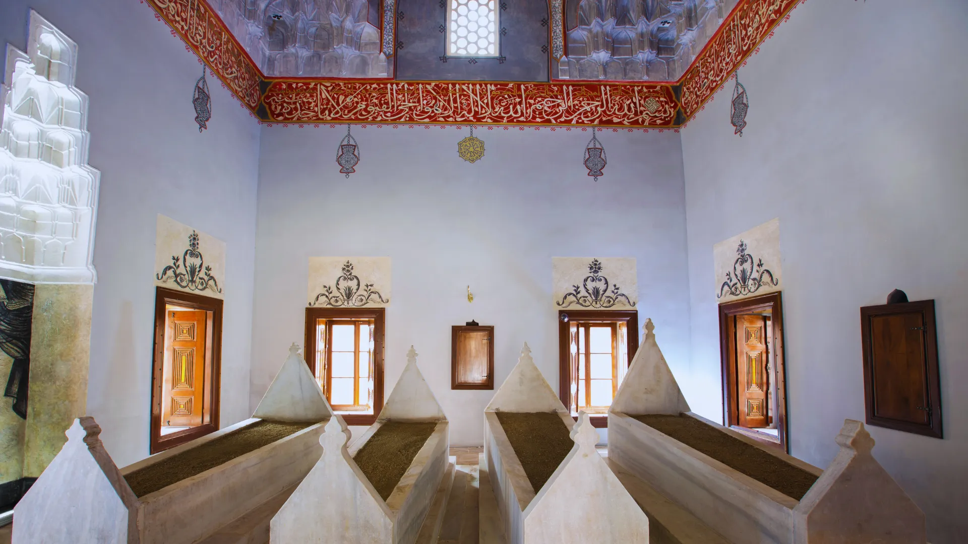 Türbede dört adet mermer mezar bulunmaktadır. Tarihi kayıtlarda geçtiğine göre bu mezarlar: II. Bayezid’in eşi Gülruh Hatun, kızı Kamer Sultan, Şehzade Alemşah’ın kızı Fatma Sultan ve Kamer Sultan’ın oğlu Osman’a aittirler.
